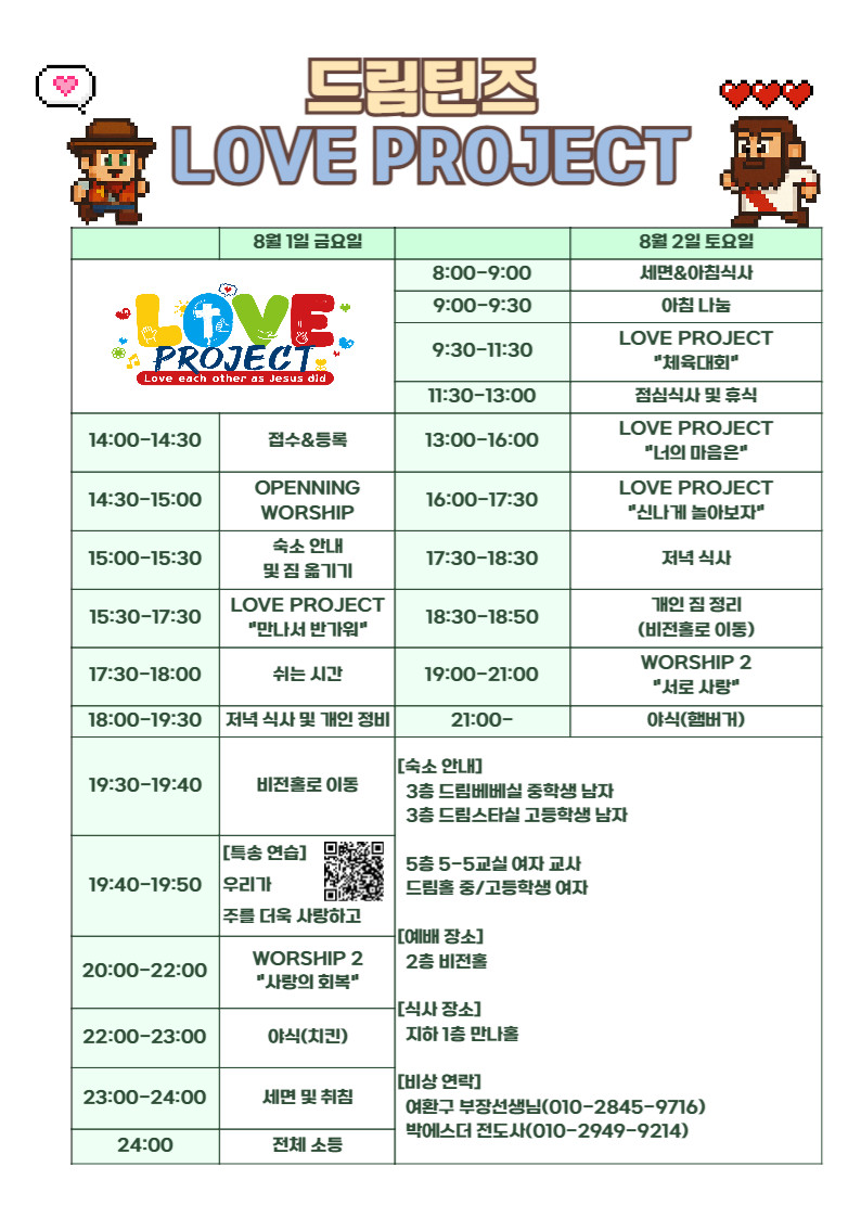 💖 드림틴즈 수련회는 8/1-3 교회에서 진행됩니다.