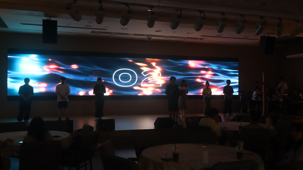 광고시간에는 여름 수련회 안내와 수련회 맞이 밴드 개편에 대한 안내가 있었습니다.