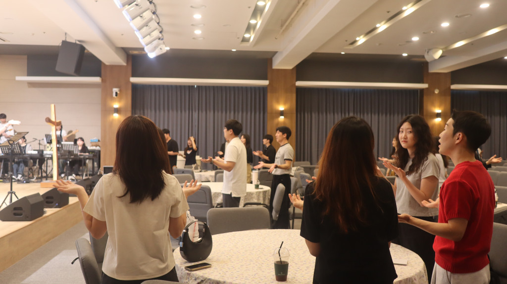 새벽이슬의 찬양으로 예배를 시작했고 청년들을 축복하는 시간을 가졌습니다.
