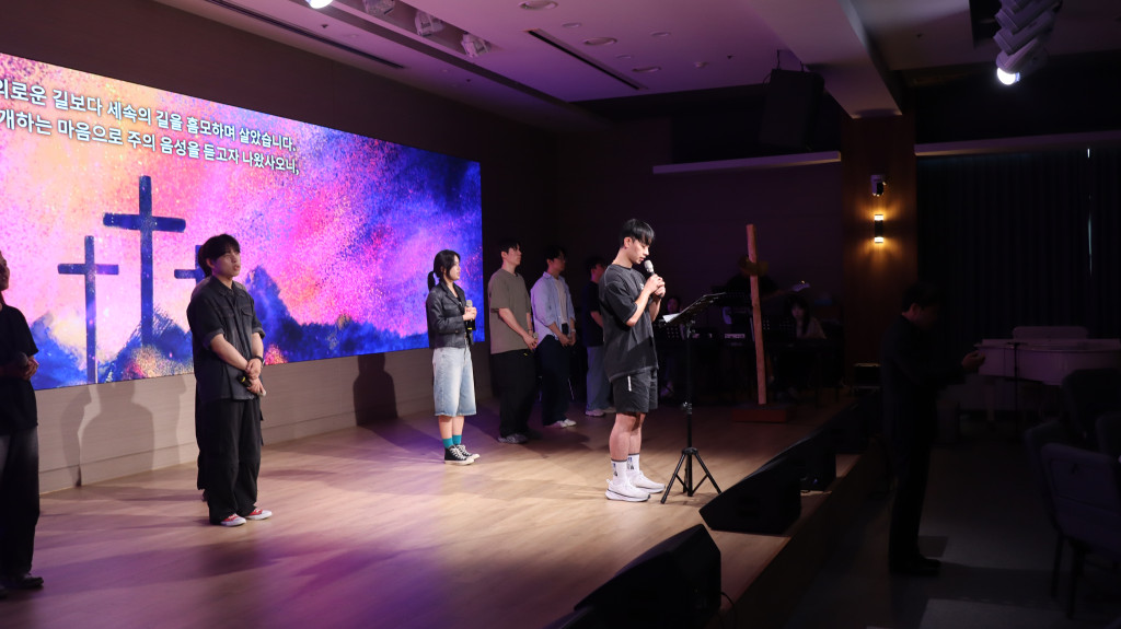 새벽이슬의 찬양으로 예배를 시작했고 청년들을 축복하는 시간을 가졌습니다.