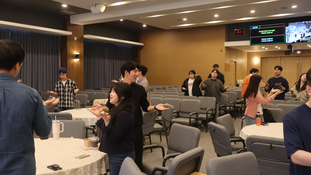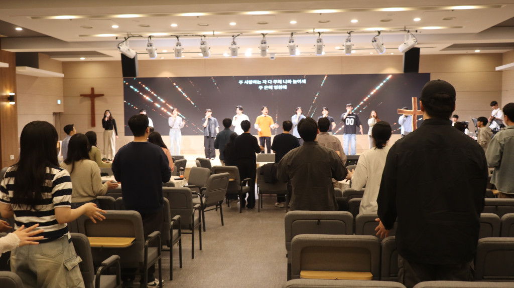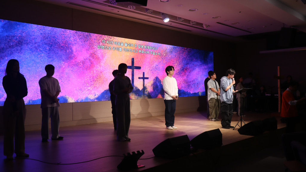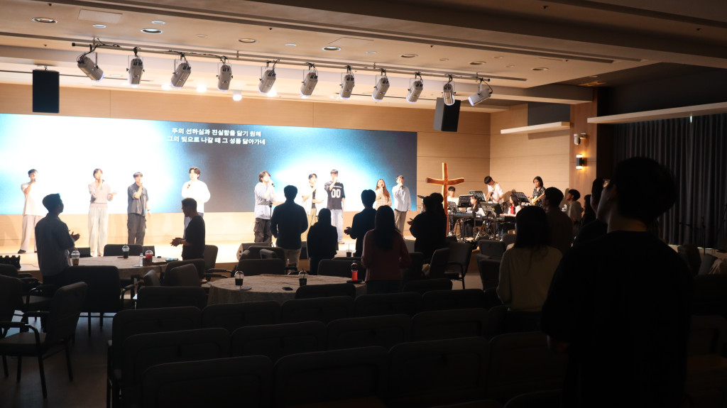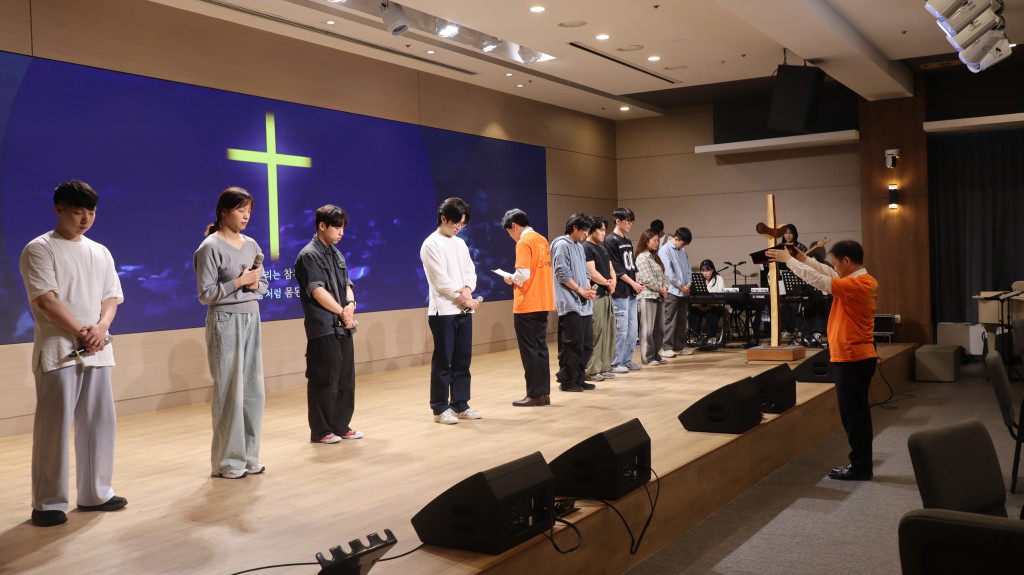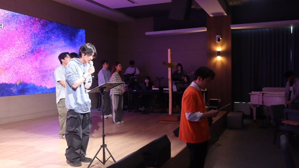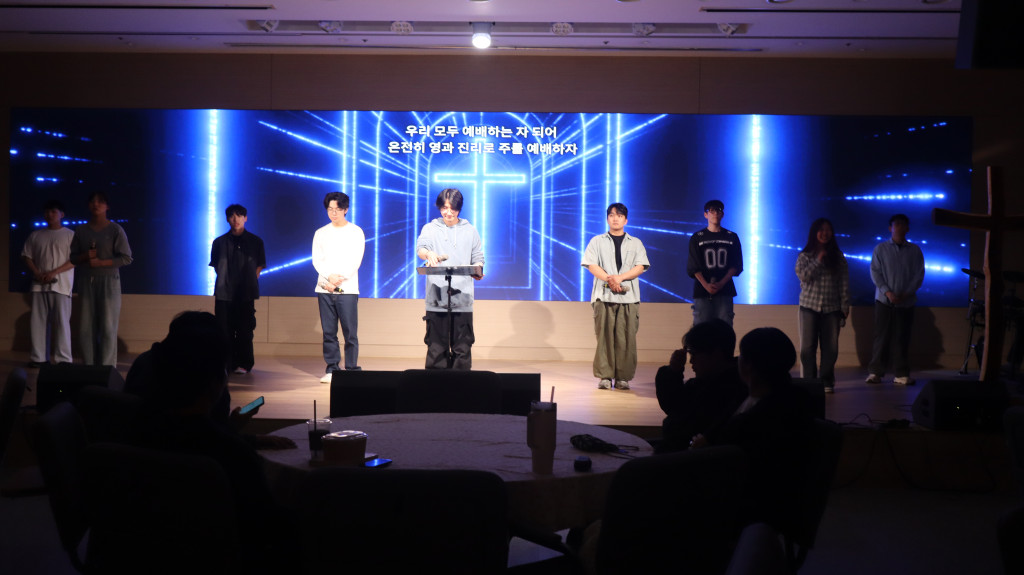 새벽이슬의 찬양으로 함께하시는 주님을 찬양하며 예배를 시작했고 청년들을 축복하는 시간을 가졌습니다.