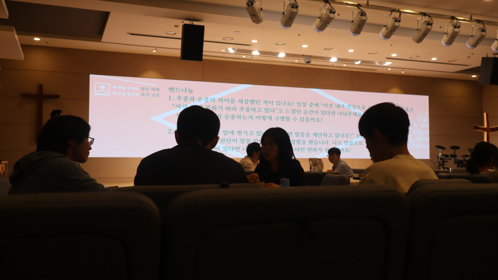 광고시간에는 하루한장 통독챌린지와 춘계 대심방에 대한 안내가 있었습니다.