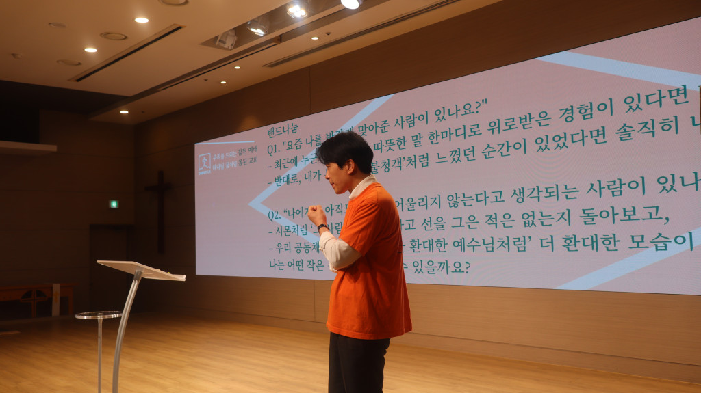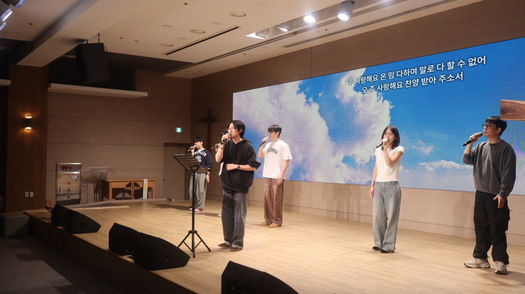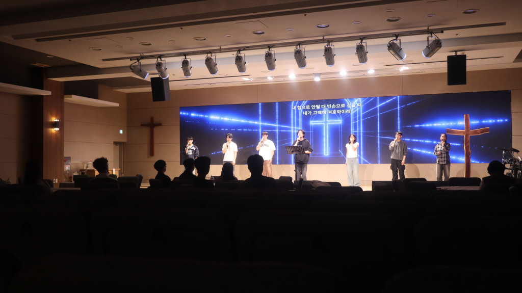 광고시간에는 하루한장 통독챌린지와 수련회 맞이 밴드 개편에 대한 안내가 있었습니다.