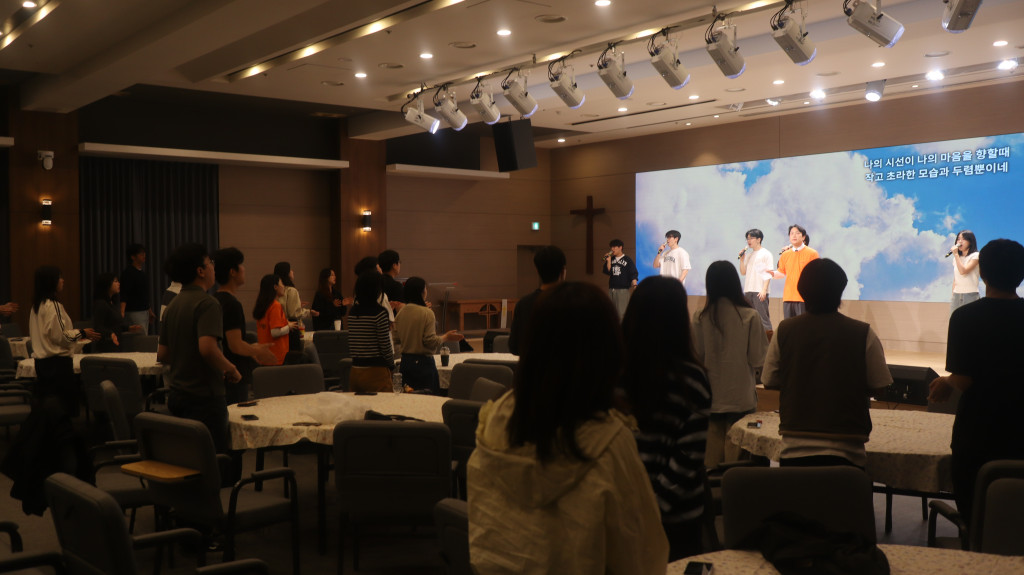 새벽이슬의 찬양으로 함께하시는 주님을 찬양하며 예배를 시작했고 청년들을 축복하는 시간을 가졌습니다.