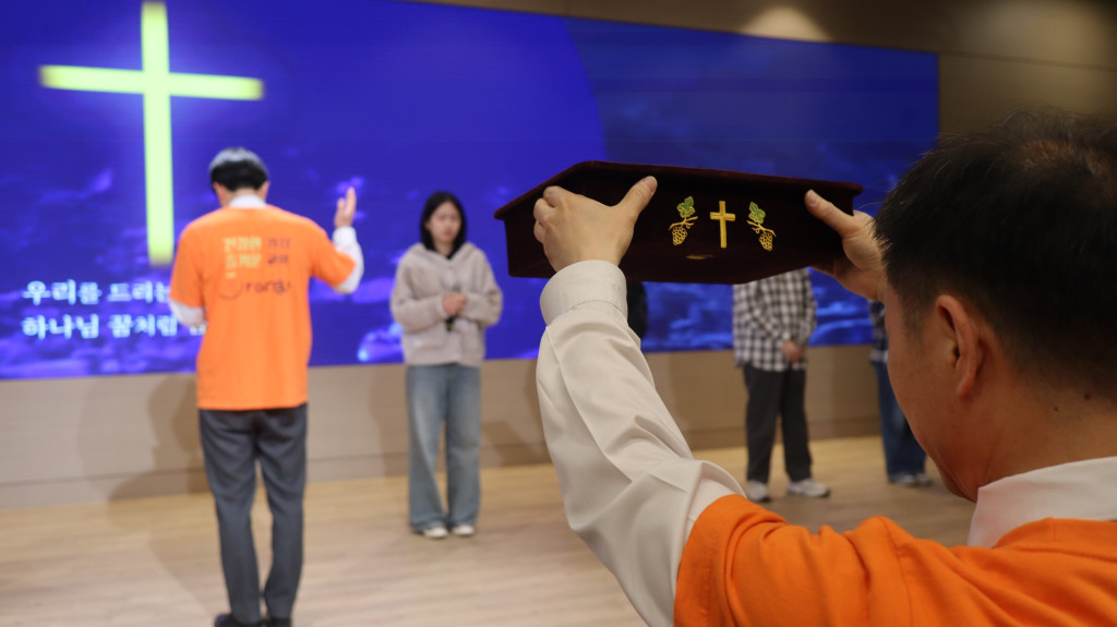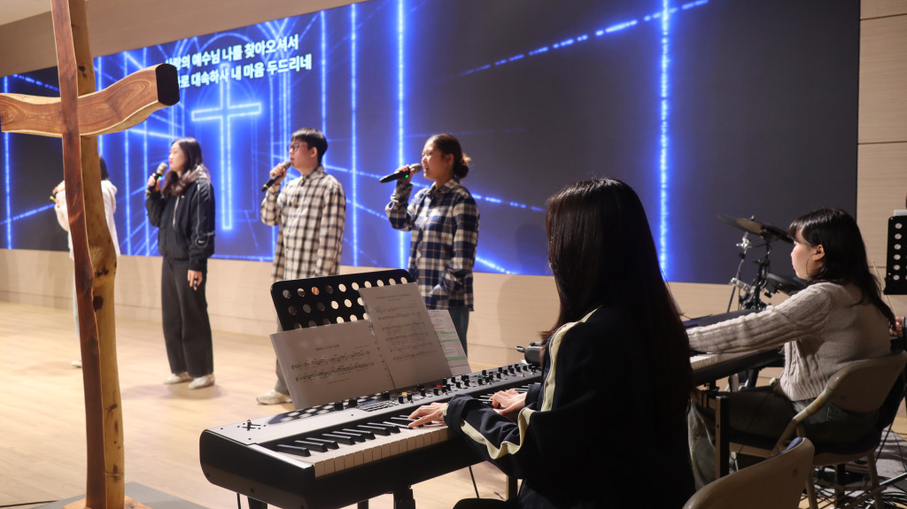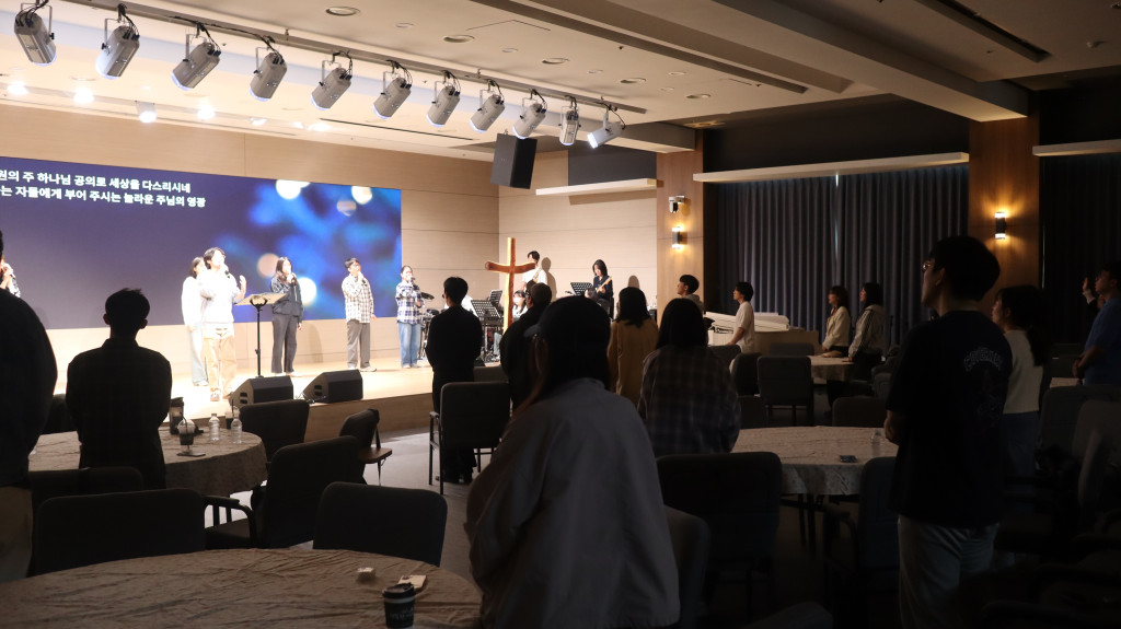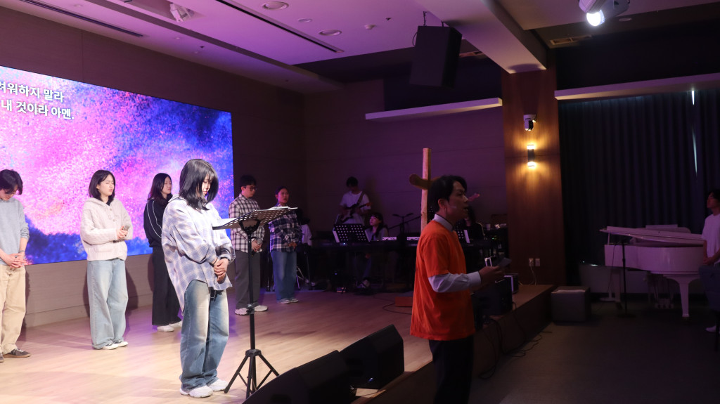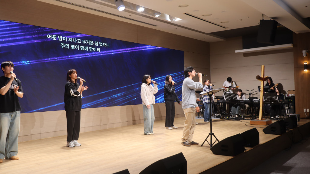 기쁨 가득한 새벽이슬의 찬양으로 예배를 시작했고 청년들을 축복하는 시간을 가졌습니다.