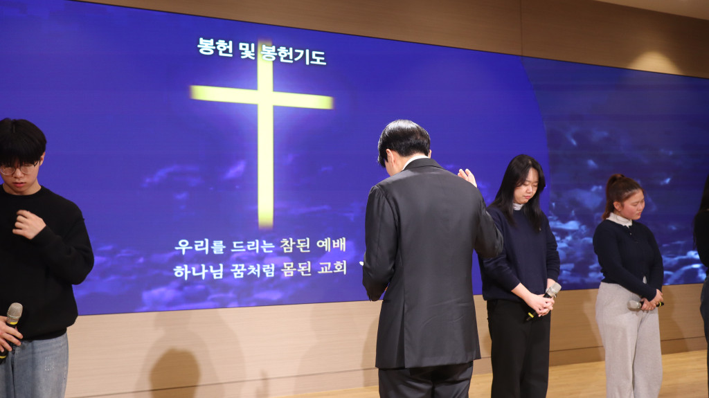 새벽이슬의 찬양으로 은혜롭게 예배를 시작했고 청년들을 축복하는 시간을 가졌습니다.