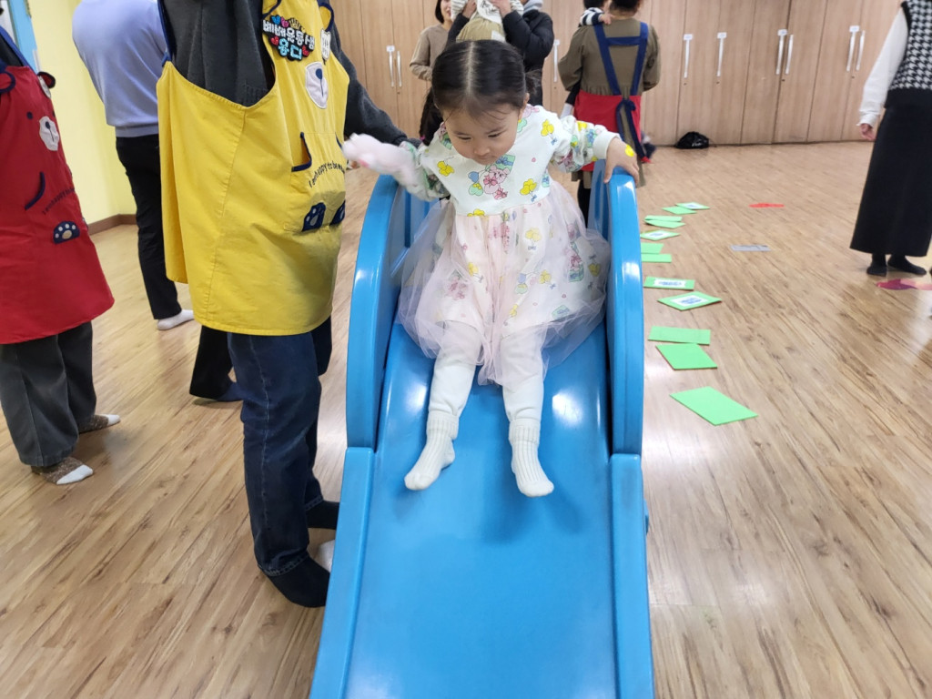 오늘 놀이활동 시간에는 예수님의 길을 준비했던 세례요한처럼 우리도 색깔판을 건너뛰어보며 길을 만들어본 후 마지막에는 미끄럼틀을 타고 신나게 내려왔습니다.