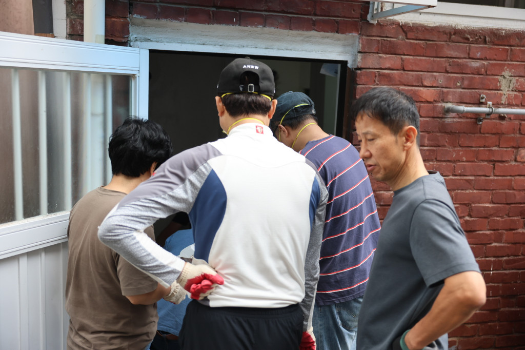 아침 일찍부터 함께 모여 벽지를 걷고 장판을 교체하며, 청소와 정리까지 한마음으로 수고했습니다.