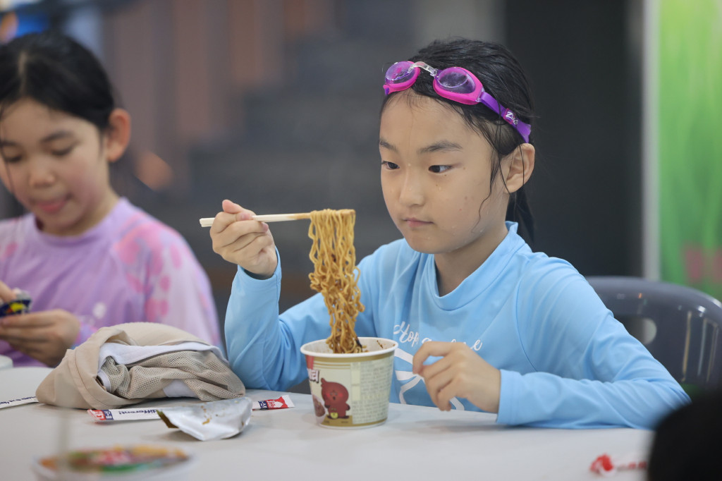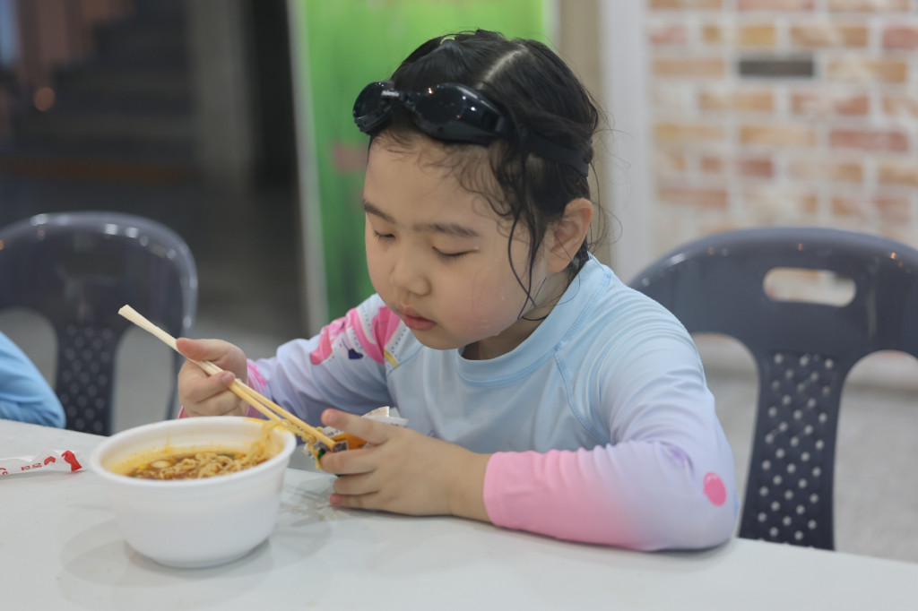 아이들이 어쩜 지치지도 않는지 물 속에서 나올 생각을 하지 않습니다!
