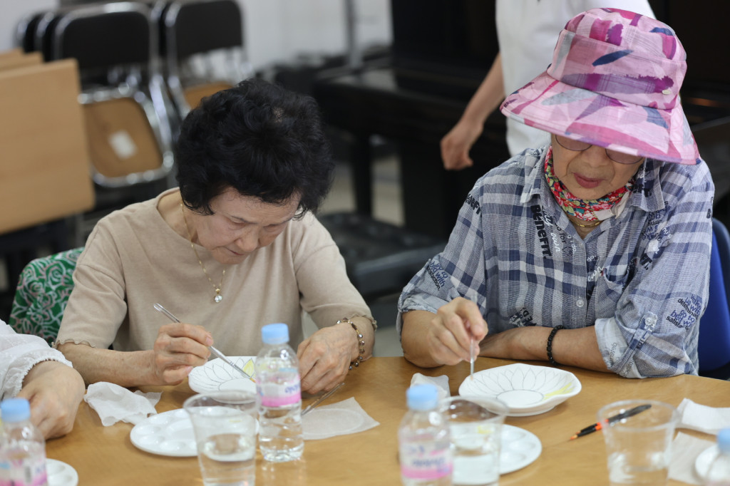 바로 전경란 권사님을 모시고 도자기 채색 수업을 함께 진행했습니다. 모두 소년, 소녀처럼