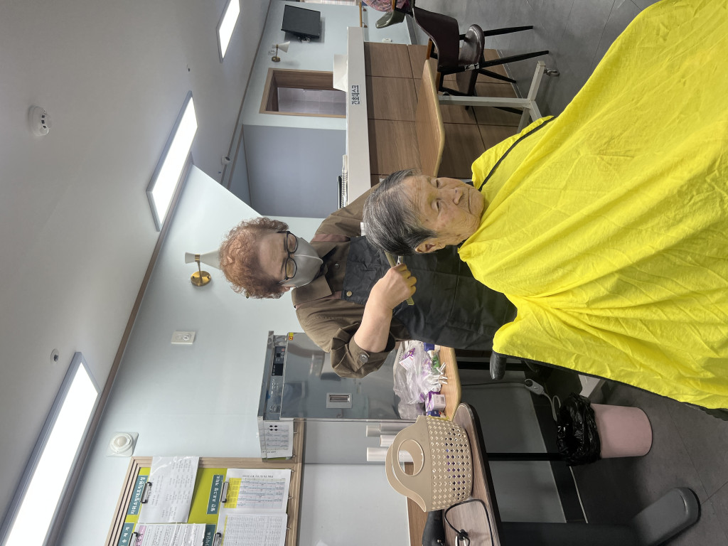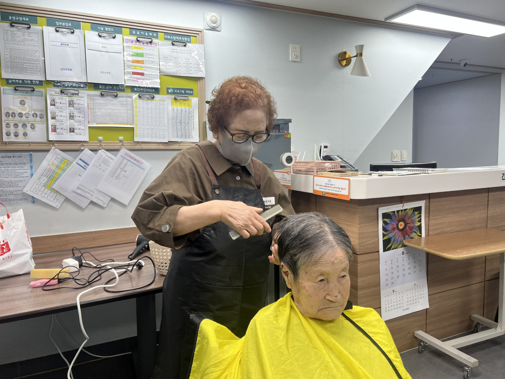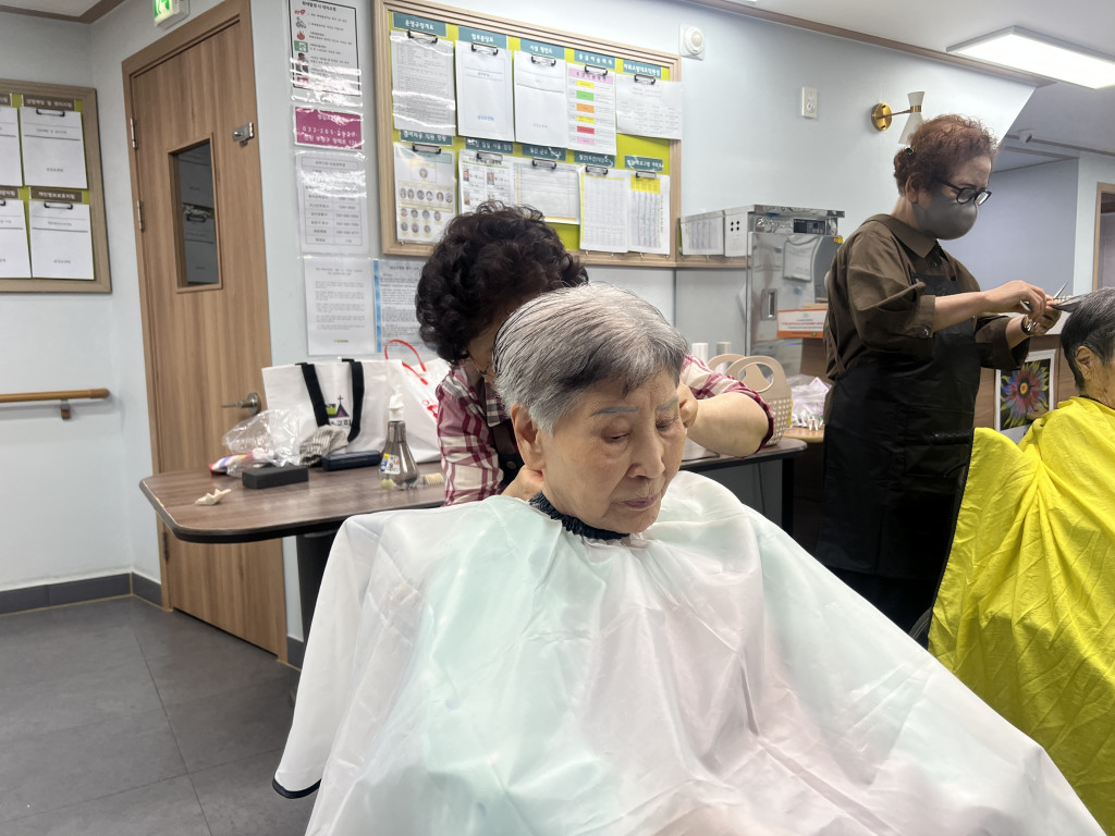 봉사국은 섬김요양원에서 정성으로 머리를 손질하며