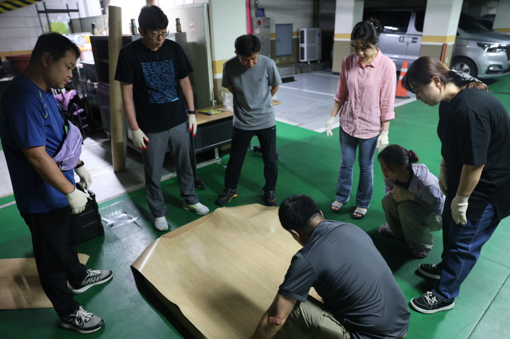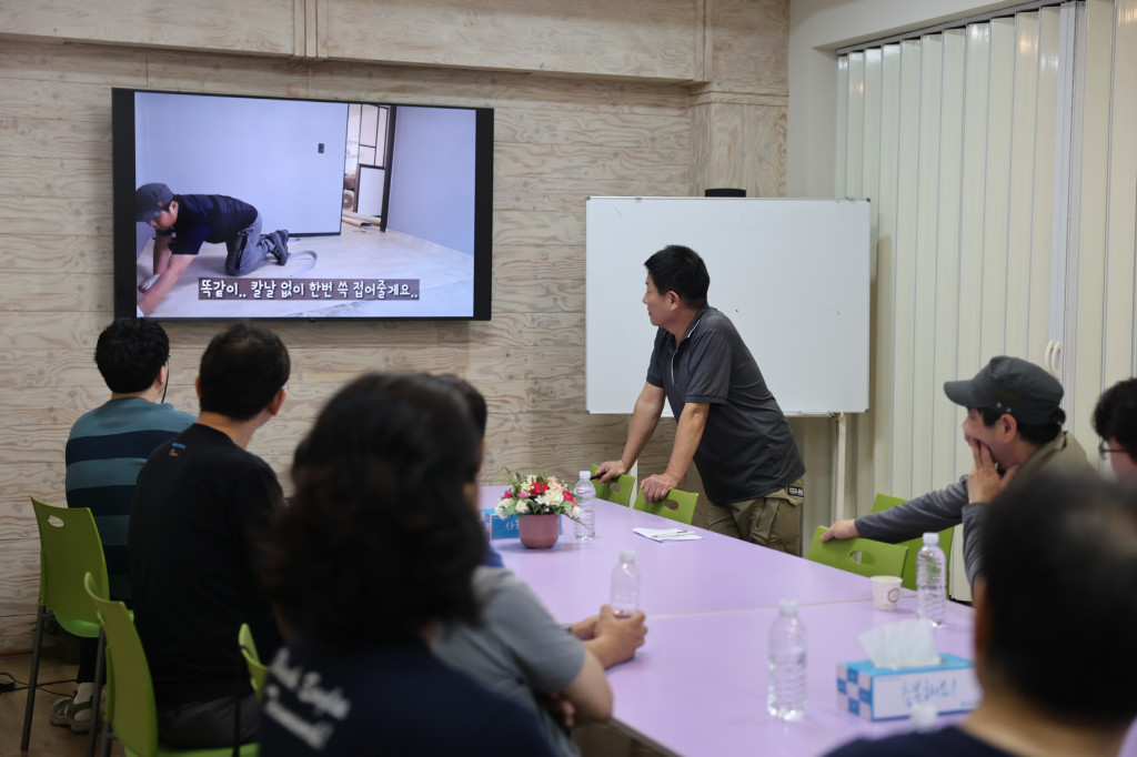 교회에서 진행될 해피하우스 사역을 위해 도배나 장판을 배우는 세미나에