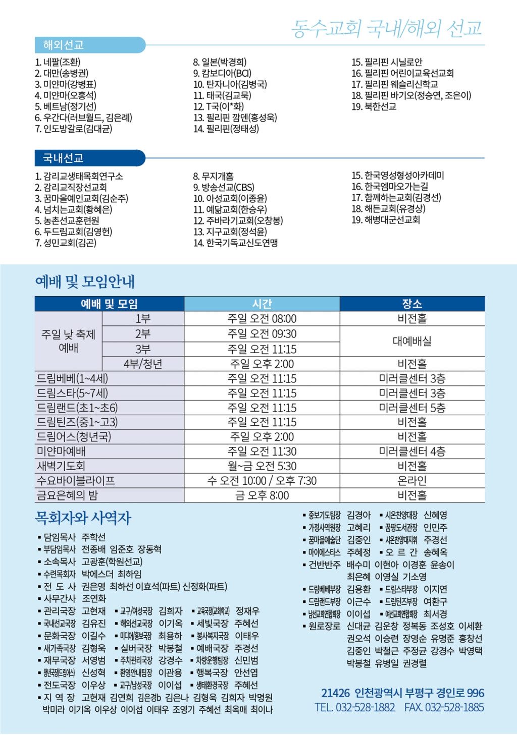 예배와 모임 안내