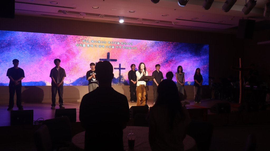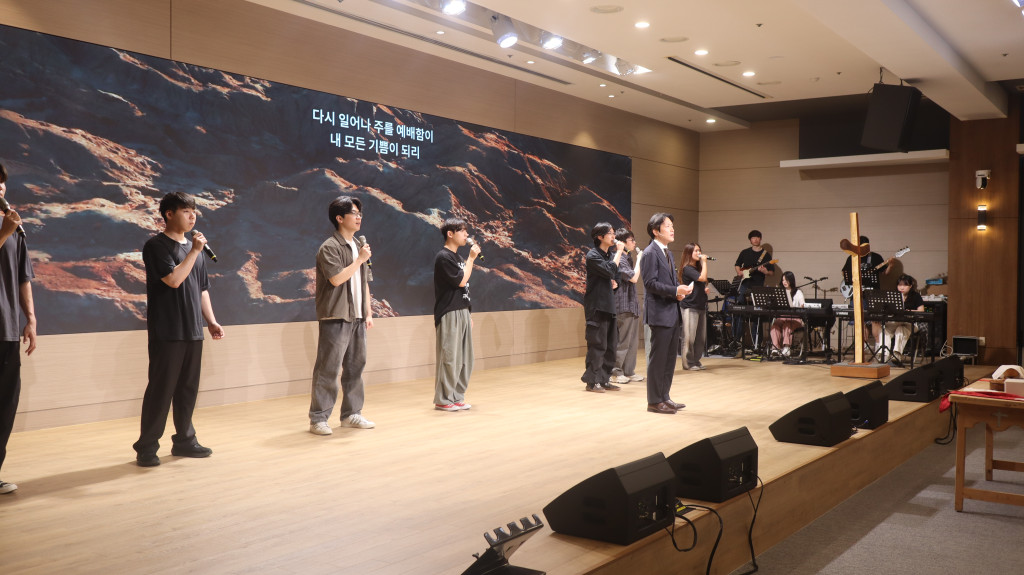 새벽이슬의 찬양으로 예배를 시작했고 청년들을 축복하는 시간을 가졌습니다.