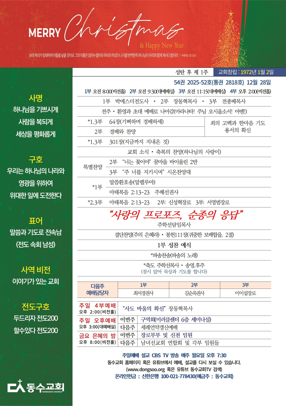 온라인 주보를 보기 원하시는 분은 <온라인 주보>를 클릭해주세요.
