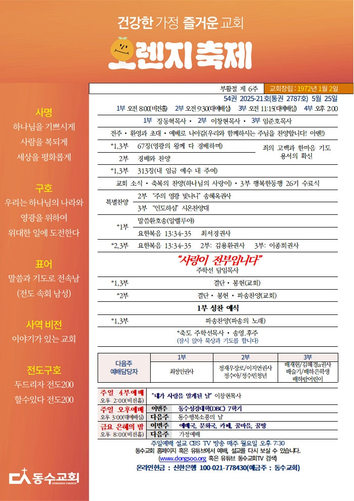 온라인 주보를 보기 원하시는 분은 <온라인 주보>를 클릭해주세요.