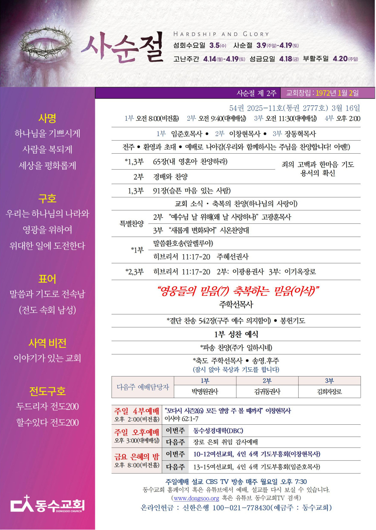 250316 동수교회 주일 예배 실황 영상 "영웅들의 믿음(7) 축복하는 믿음(이삭) "